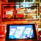 俺はあいも変わらずゴルバー。さくっと3連荘して、ガシガシ飲ませようとしてたら遅れから液晶に7!。もちろん左リールは中段GOD点灯!。こないだの日記にも書いたけど、やっぱこの衝撃はすごい。押せねー(笑)。